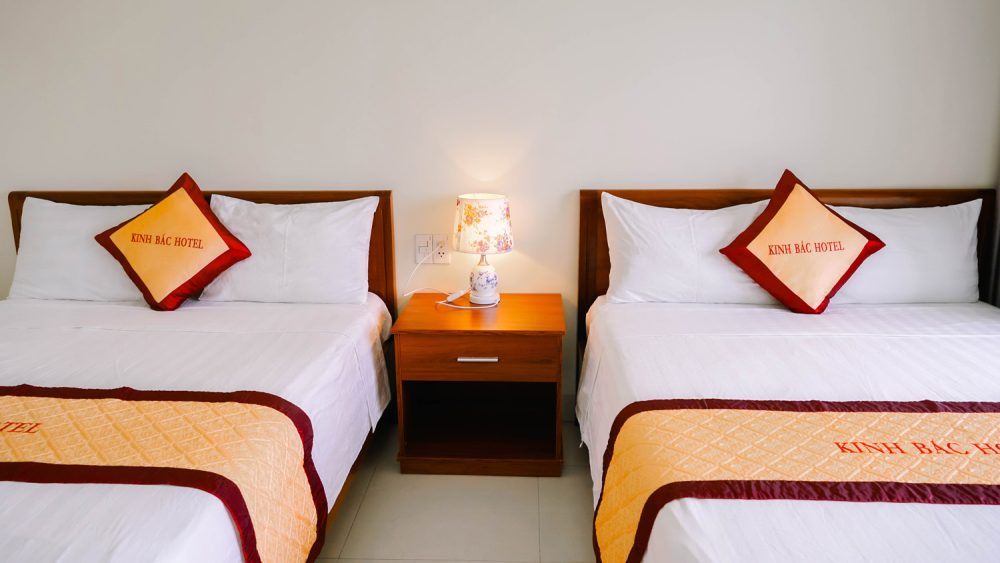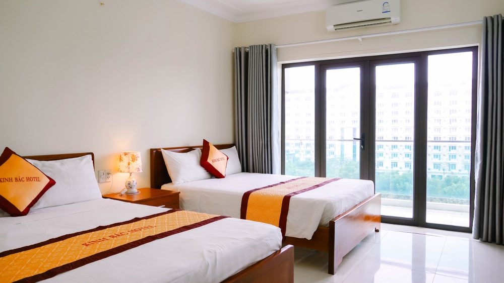 Phòng Deluxe Twin tại Khách Sạn Kinh Bắc là lựa chọn lý tưởng cho những cặp đôi bạn bè hoặc gia đình nhỏ muốn trải nghiệm không gian nghỉ dưỡng tiện nghi, thoải mái với tầm nhìn hướng vườn hoặc hướng thành phố.